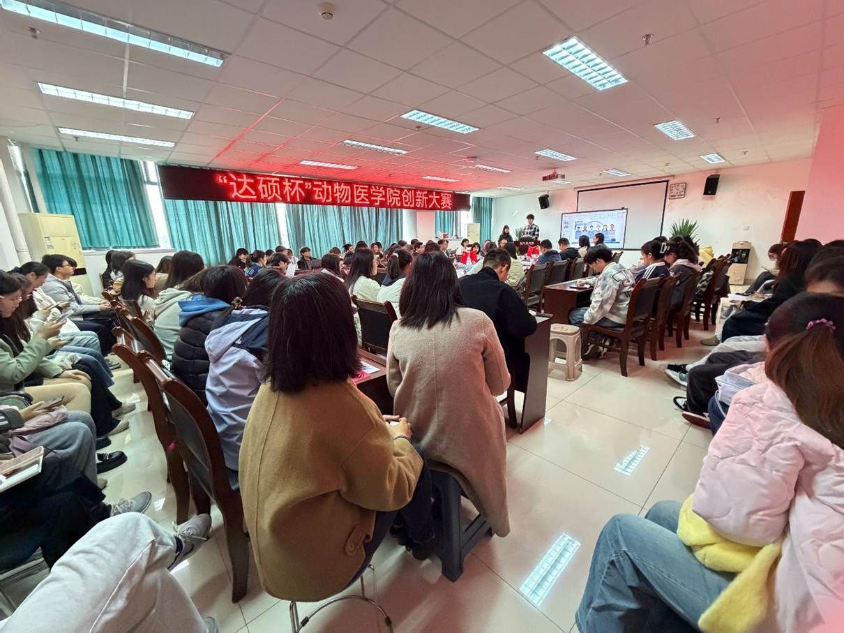 经前期多轮筛选,8支队伍入围现场答辩,研究方向涵盖宠物免疫、禽病防控、快速检测技术、中药智能系统、动物健康产品等多个前沿领域。从“免疫安”对宠物口服免疫的开拓,到“岐黄智宠”将中兽医理论与大数据AI的融合;从“快检先锋”基于CRISPR技术的病毒检测突破,到“菌不见,脂肝愁”对非酒精性脂肪肝治疗的新探索——各项目充分体现了动医学子立足专业、面向产业、回应现实需求的专业素养与创新意识。